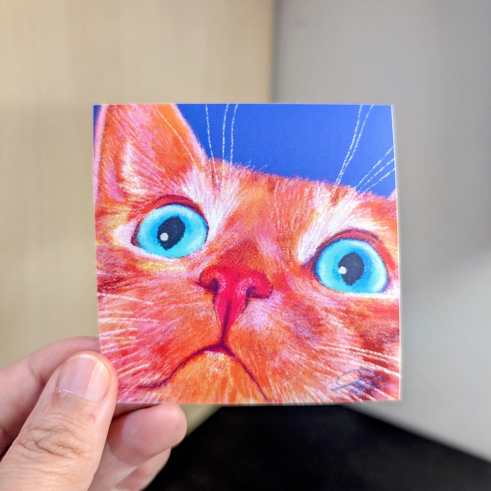 Close Encounters Collection - "No Thoughts" Non-Holographic Matte Sticker - Close up of a Silly Ginger Cat